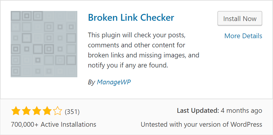 If you choose to use Broken Link Checker, you need to add the plugin to your WordPress website.