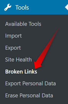 Now that you’ve installed the plugin, you need to go to Tools -> Broken Links to check your results.