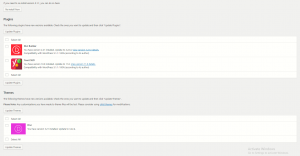 To update your theme, you can either click on the updates or themes button. Depending on where you choose to click a different page will show up. If you click on the Themes options, you’ll see a familiar setting, where all of your plugins are listed.