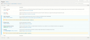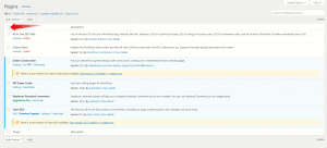 To update your plugins, you can either click on the updates or plugins button. Depending on where you choose to click a different page will show up. If you click on the Plugins options, you’ll see a familiar setting, where all of your plugins are listed.