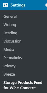The tab for the StoreYa Facebook Store plugin will occur after installation in Settings > WP-eCommerce StoreYa Product Feed.