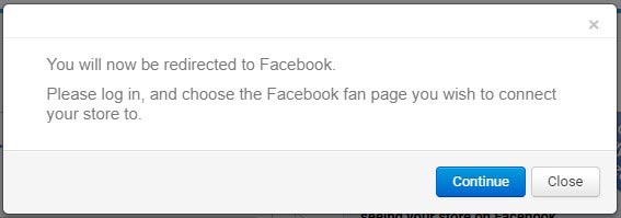 Next, press the Preview button, and you’ll see the popup with the message: “Please log in, and choose the Facebook fan page you wish to connect your store to.”