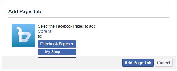 Finally, press the Continue button, pick the website to contribute to Facebook, then press the Add Page Tab button.