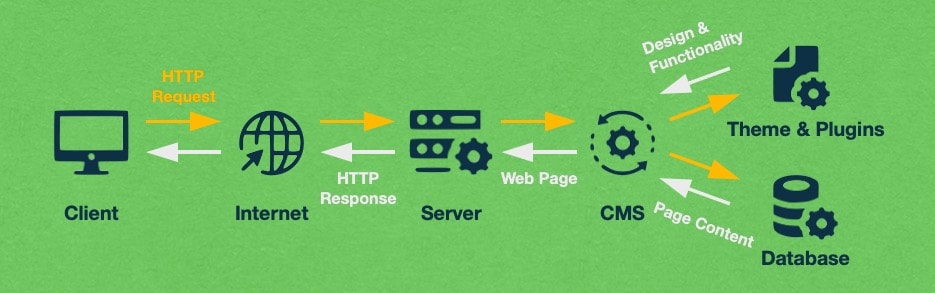 As you can see from the illustration above, every time you open a website built using a CMS like WordPress or Drupal, an entire page gets generated specifically for you using the latest information available in the database and combining this page content with the styling and additional functionality that may be set up. Needless to say, this whole process must happen quickly as long loading times lead to high bounce rates and a bad overall experience.