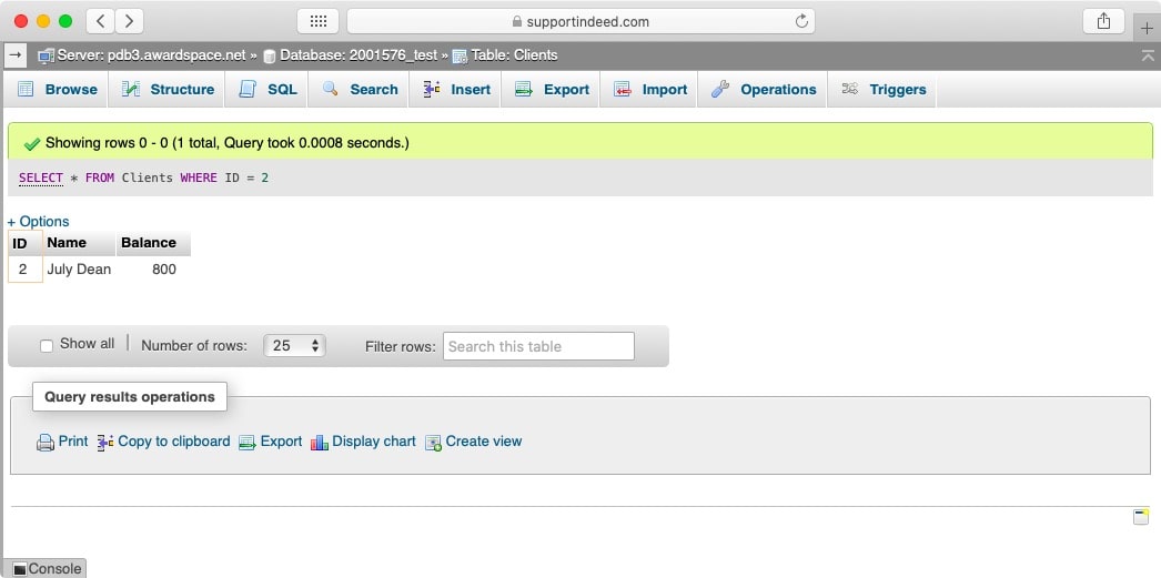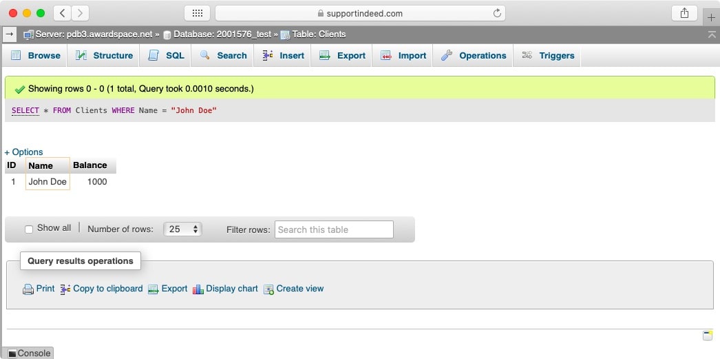 And below you can see the result returned by the database server: