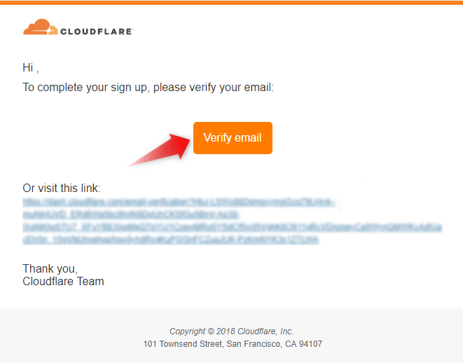 - After submitting the form, you will receive a verification letter through which you can verify your e-mail address and activate your Cloudflare account.
