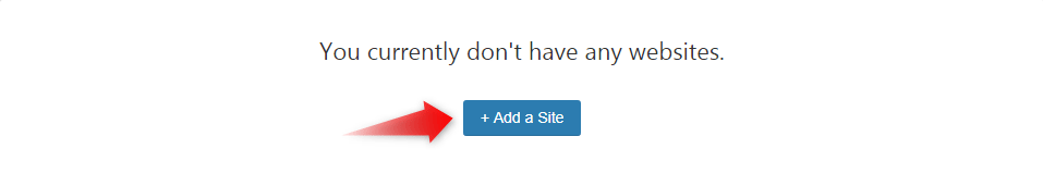 - Once in the dashboard, you will notice a message saying You currently don’t have any websites. Click the + Add a Site button to proceed.