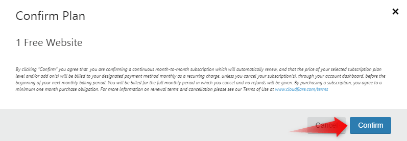 - Once you have decided on a Cloudflare account, you need to click the Confirm link