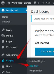 2. Once in the Dashboard, go to Plugins->Add New.