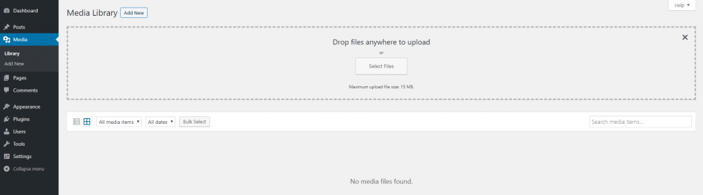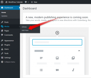 Of course, Add New is the button that if chosen will bring you to the closest to the file uploading interface, but the mentioned button is present on the Library page, which will load whether you click Library or Media.