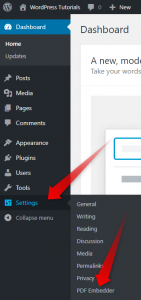 When you install and activate the plugin it already works. You can, if you want, enter the settings page of the PDF Embedder plugin, which you’ll find under Settings on the sidebar menu of your admin panel.