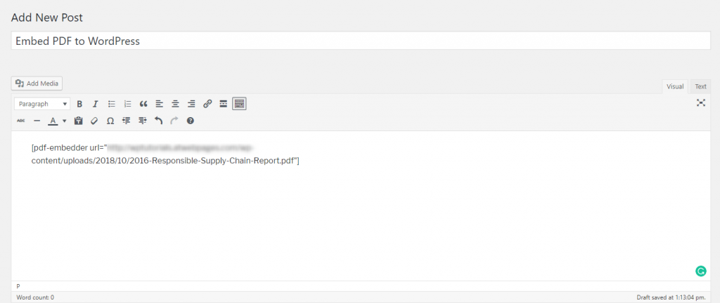 To prevent that from happening, or if you have access to the file only locally on your computer, you’ll need to upload the PDF to your WordPress, which we explained in the previous step.