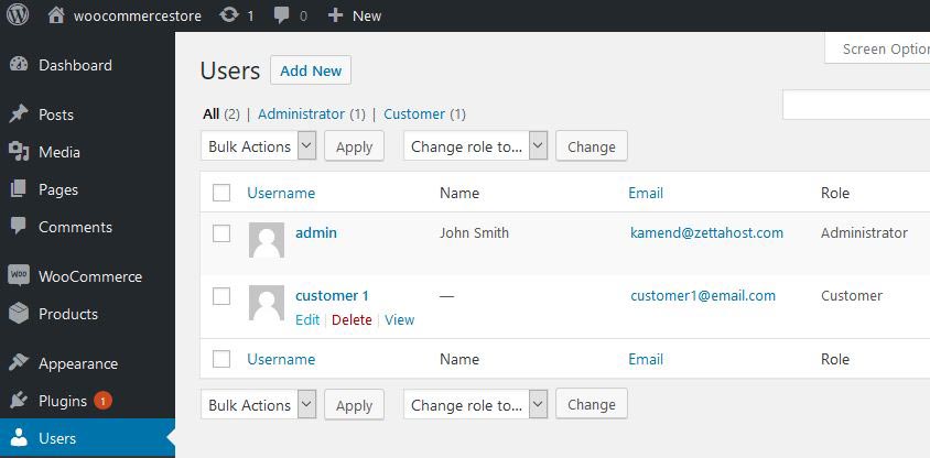 - Hover over the name of a customer, and click on the link edit. This will redirect you to the user profile page.