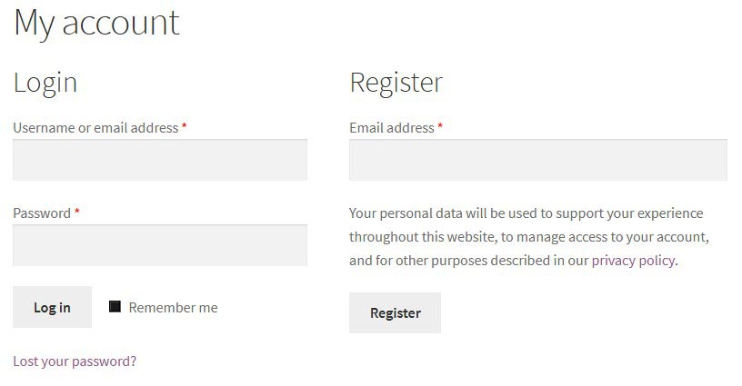 Anybody can browse the WooCommerce store and its items. However, clients must create an account or log in to be able to make a purchase.