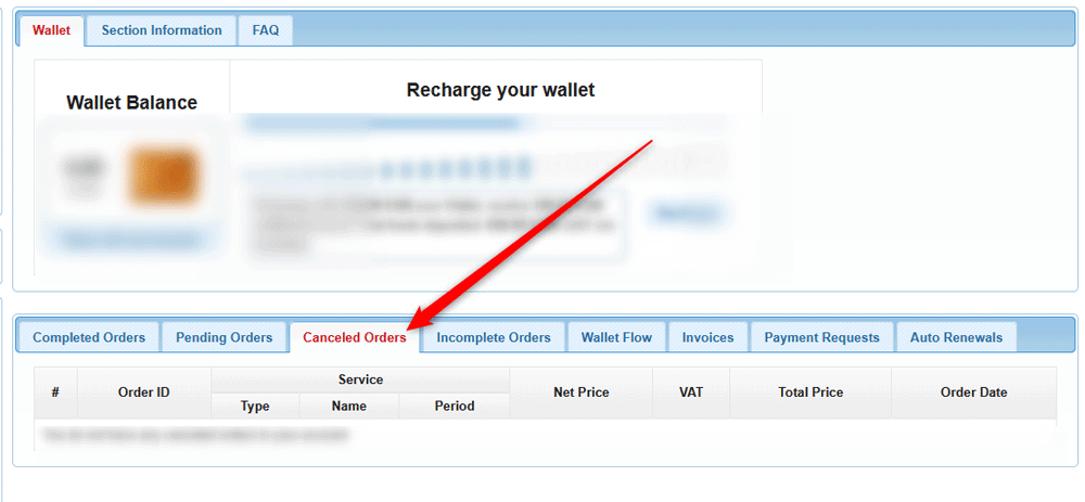 Then, within the Canceled Orders tab, you can browse your canceled orders with AwardSpace: