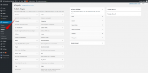On the right half of the screen, are located the widget areas in which you’ll be able to put the widgets. What type and how many widget areas you have is determined by the WordPress theme that you are using.
