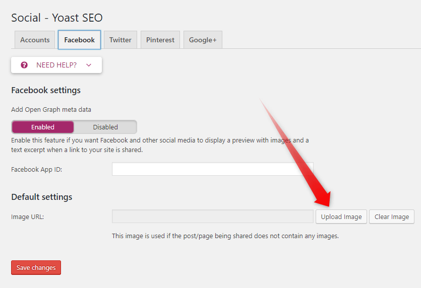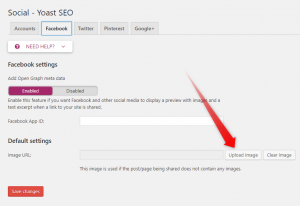 Click the Upload Image button, and choose the image you want to be a default featured image for every page or post that you share on the social network.