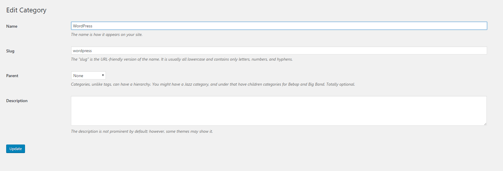 Editing WordPress category