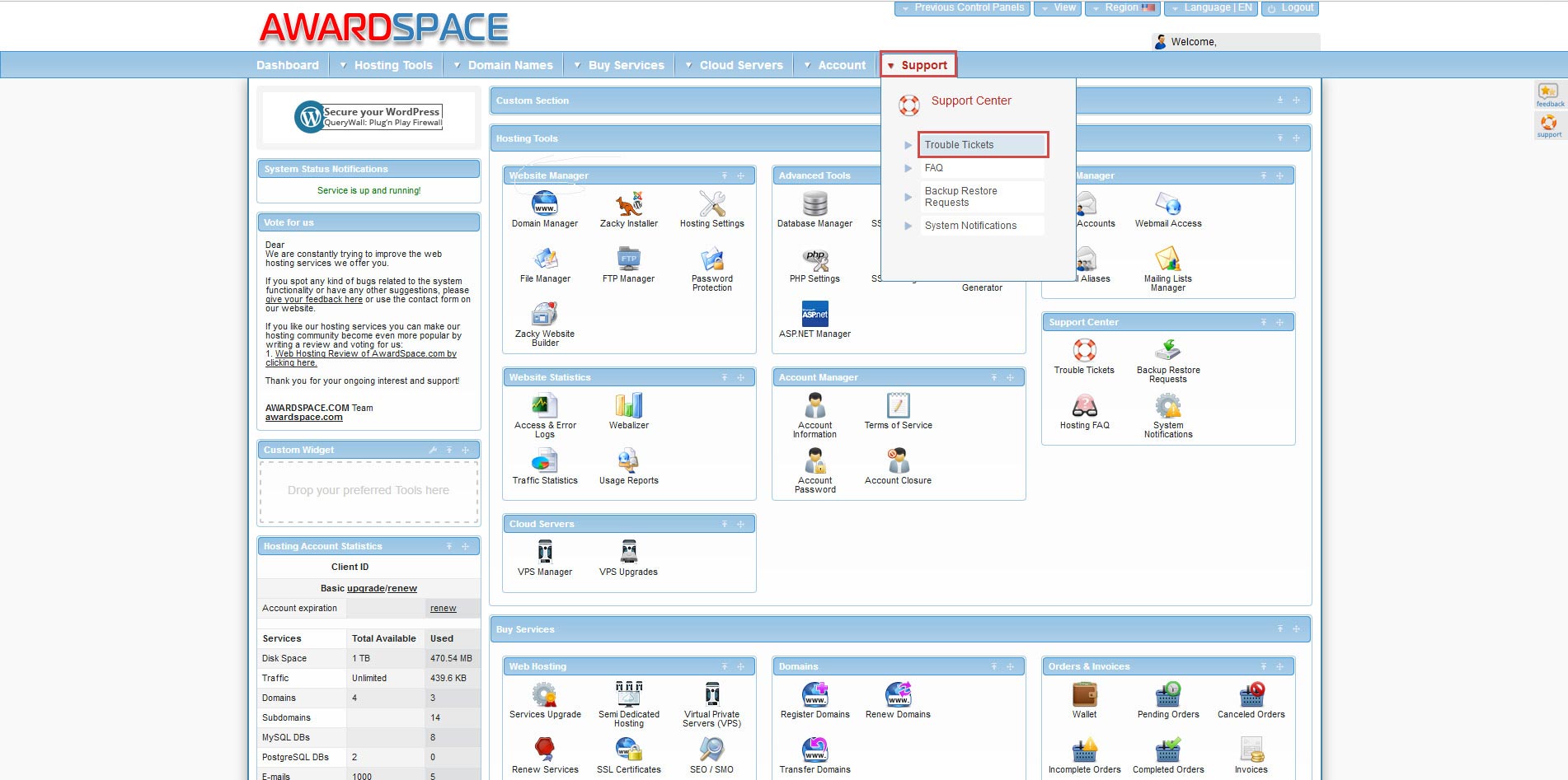 We do understand how important it is for you to receive help from experts. Thus AwardSpace's technical support department is made up of people who really do understand hosting. They'll help you regardless of your technical background.