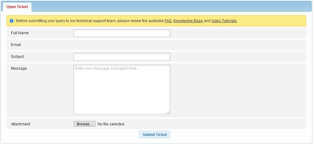 Once you’ve submitted a query, the system will automatically send you an email with a unique ticket number logged on queue inside the ticket system and is waiting for technical support attention.
