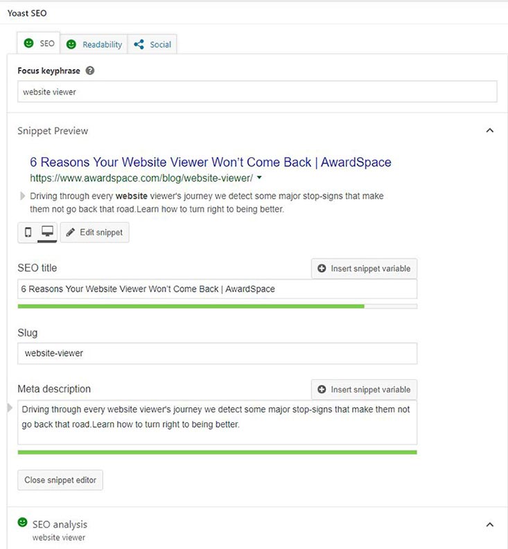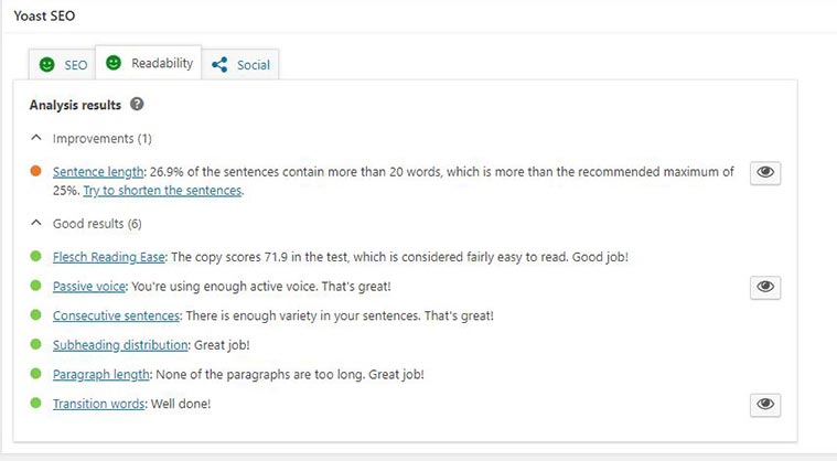 These great advantages are for the free version of Yoast. The paid one comes with even much more, but for now, we’ll focus on the free plugin. If you are keeping up with a blog then you need to make sure the articles are written well for the optimization process. This means readability, using language that is not too difficult or too simple, transition words, mentioning your keyword the right amount of times, and taking care of your meta and title to make sure your page/post looks great for Google or the other search engines.