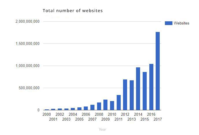 “In 2016, the number of websites has almost doubled: from 900 million to 1.7 billion.” Right now, in 2019 that number is almost reaching 2 billion websites online.