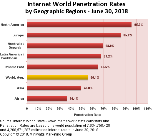 In a research made by Internet World Stats on June 30, 2018, they estimated that more than 55% of the people worldwide are connected to the internet.