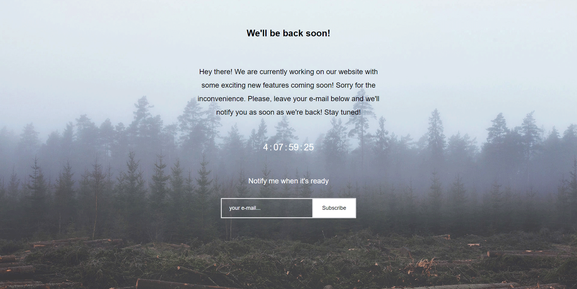 Furthermore, collecting e-mails and displaying a countdown timer shows that you care to keep your visitors updated and on track with the upcoming changes.