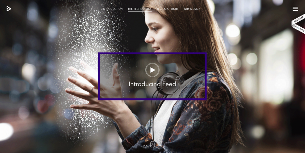 Feedmusic’s website incorporates a large variety of scrolling effects