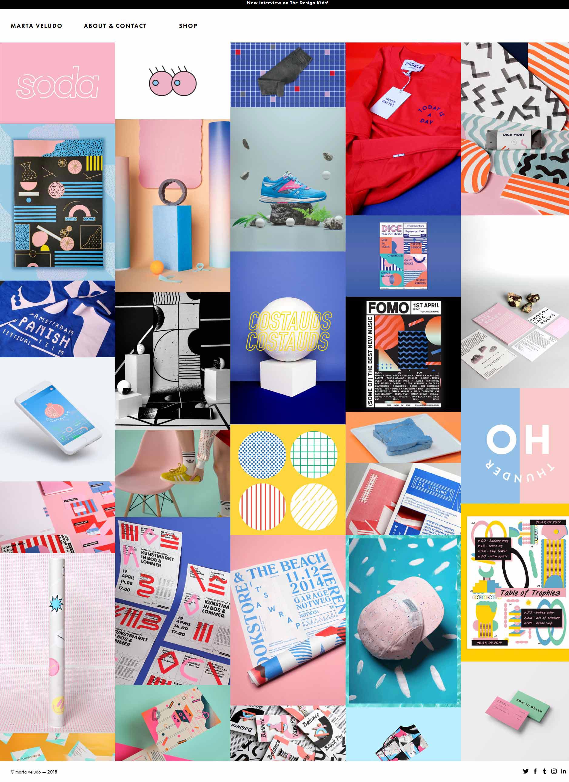 Her website’s reminiscence of Tumblr isn’t a coincidence, but rather a deliberate effect. The infinite scroll and the masonry gallery allow users to dive into the contemporary design waters with a pinch of millennial pink and a grid overlay.