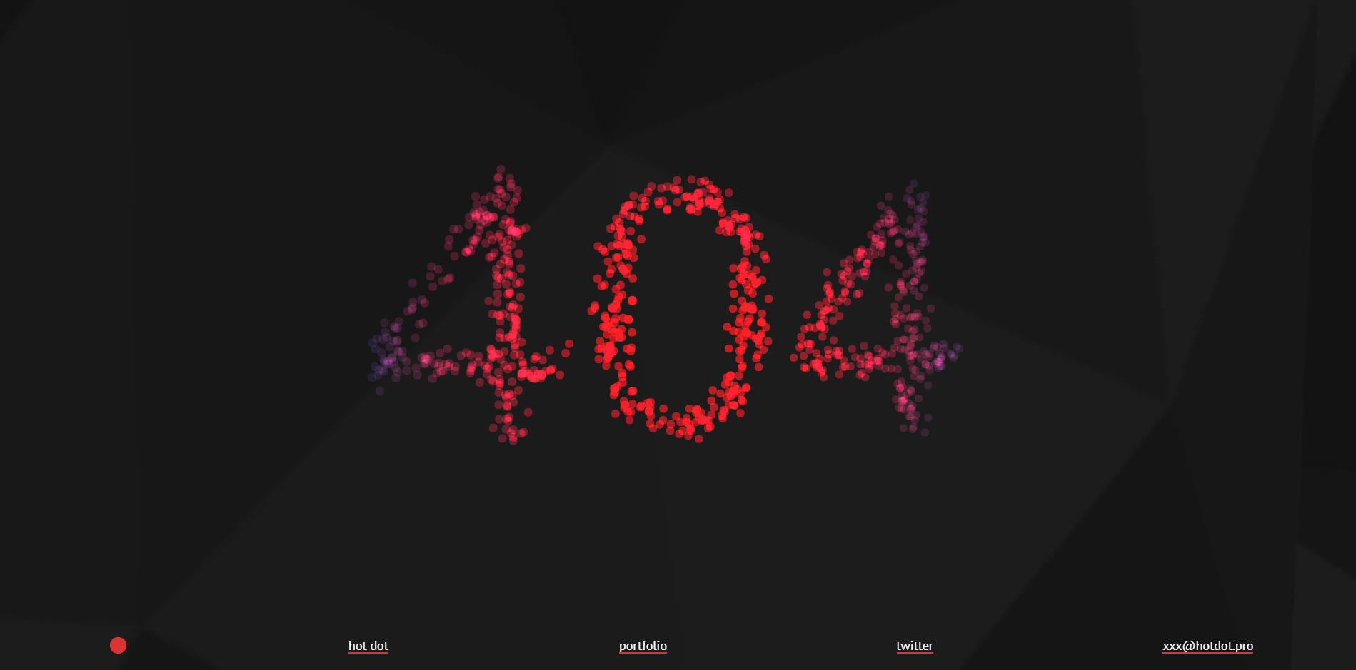 Hot Dot Production‘s 404 page lives up to its promise of meeting technology and design. With a sharp contemporary-looking graphic representation of the numbers, the page is made up of hundreds of tiny dots which move in response to your mouse movements and clicks. They surely know how to entertain their users.