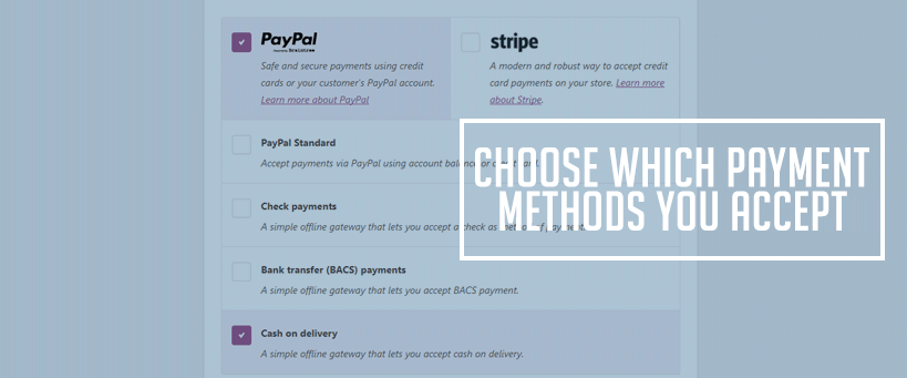 7. Choose the payment methods that you’ll accept. Make sure to choose at least two options. Click Continue.