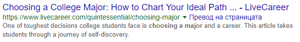 A good example of a meta description beginning, while looking for “how to choose a major” is the following: