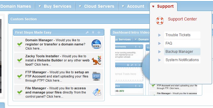 - From the Support menu choose Backup Manager