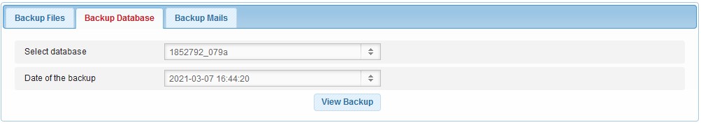 Once you have done that a page will load with the options to browse the backups for your websites and databases.