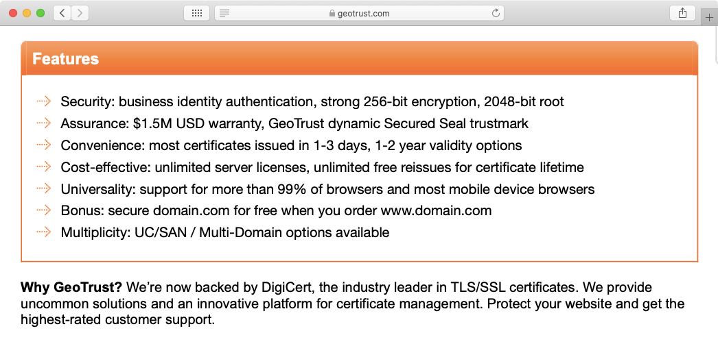 You can check the GeoTrust SSL comparison page to get more information on the differences between the various paid SSL options. If you are still unsure which certificate to pick, you can contact our 24/7 Sales Team for a quick consultation.