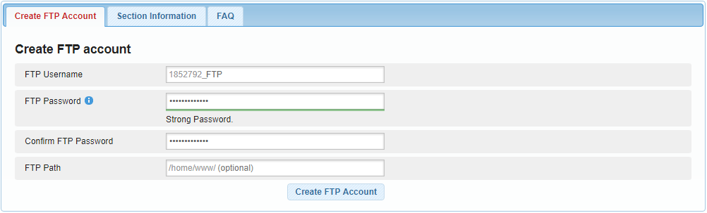 - Finally, click on the Create FTP Account button.