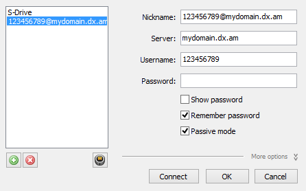 - In the left pane, under My Sites, click on the site you would like to connect to.