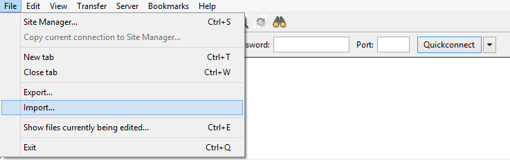 You can follow the steps below to import a FileZilla configuration file: