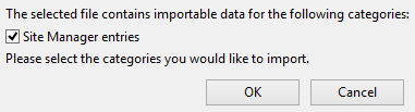 - A new window will appear asking you to confirm your Import settings. Mark the Site Manager entries checkbox and press OK.