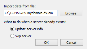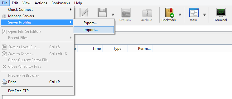 - Open the File menu, select Server Profiles from the list and click Import….