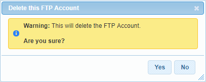 You will see a confirmation dialog asking: This will delete the FTP Account. Are you sure?