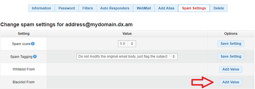 If you do not wish to receive an email from a specific email address or domain, you may use the Blacklist From feature to block incoming messages. To add an email address or domain name to a block list: