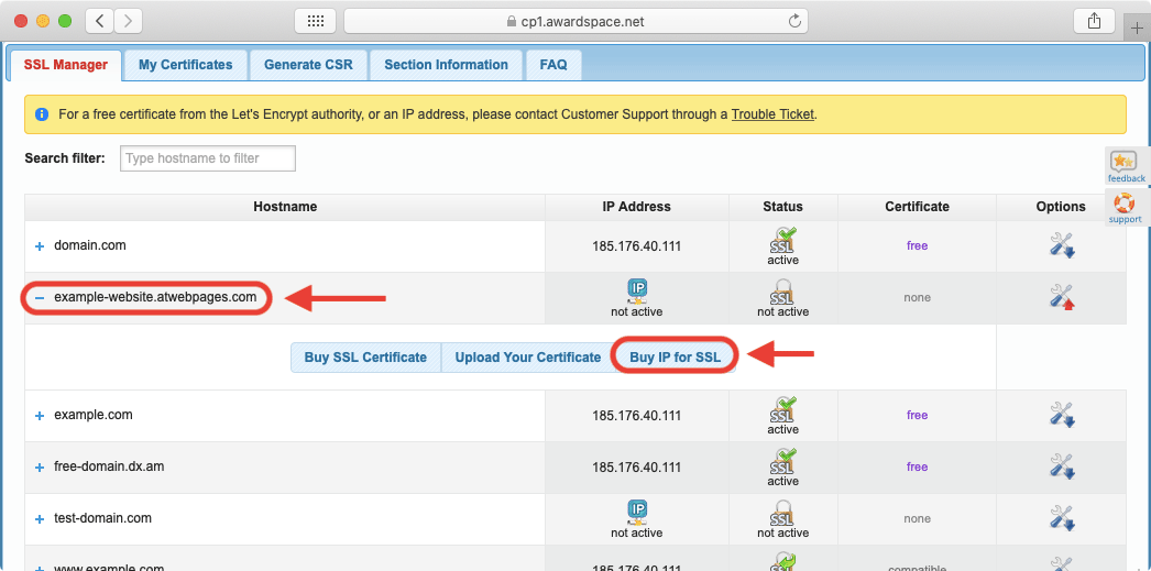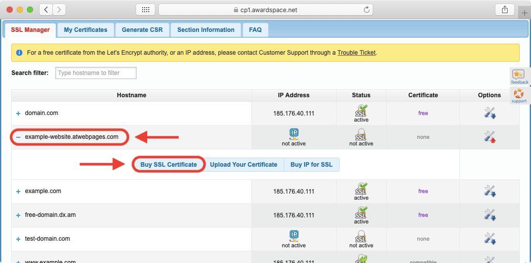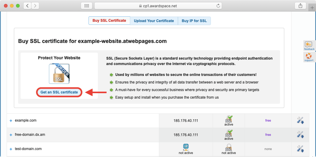 Option 1: Purchase an SSL Certificate Through AwardSpace.