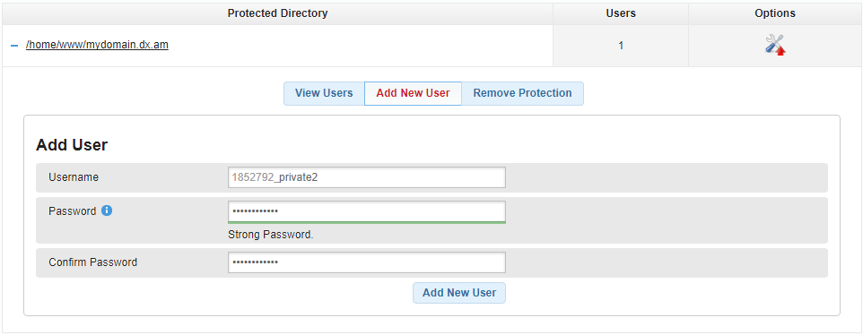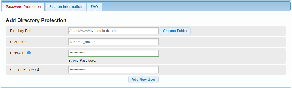 Creating New Users via the Add Directory Protection Form