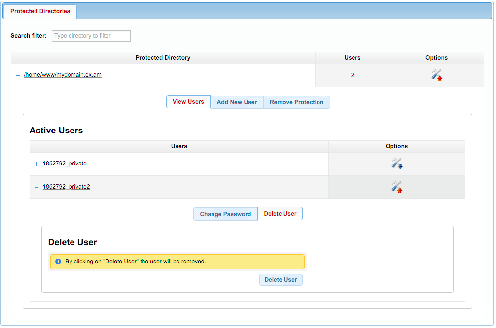 - Click on the Options button next to your existing protected directory.