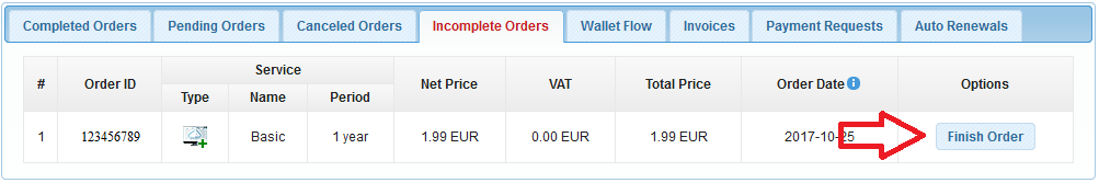 An order will be marked as incomplete if you have attempted to purchase a service, but have not completed the last step of the purchase process – making a payment.