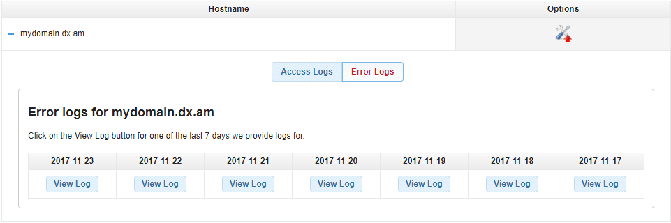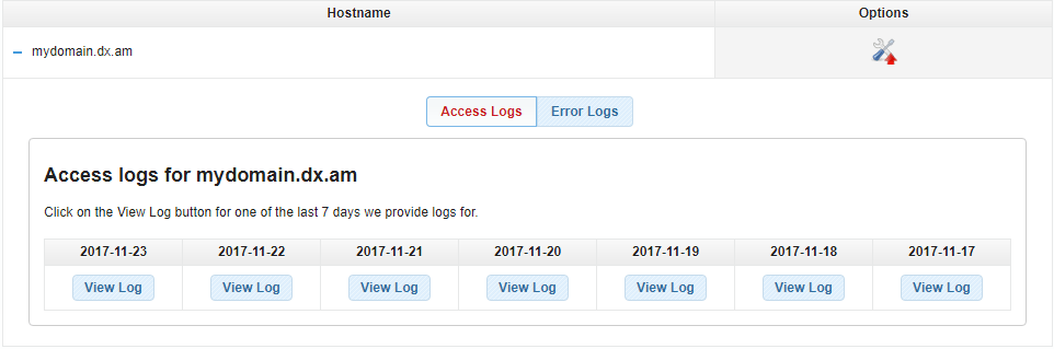 To download the access/error log file for a specific hostname (website), please perform the following actions: