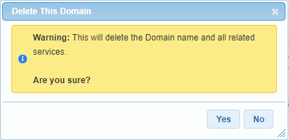 - You will be prompted to confirm whether you want to remove the domain and the data associated with it. Click Yes to complete the deletion process and proceed to the next step.