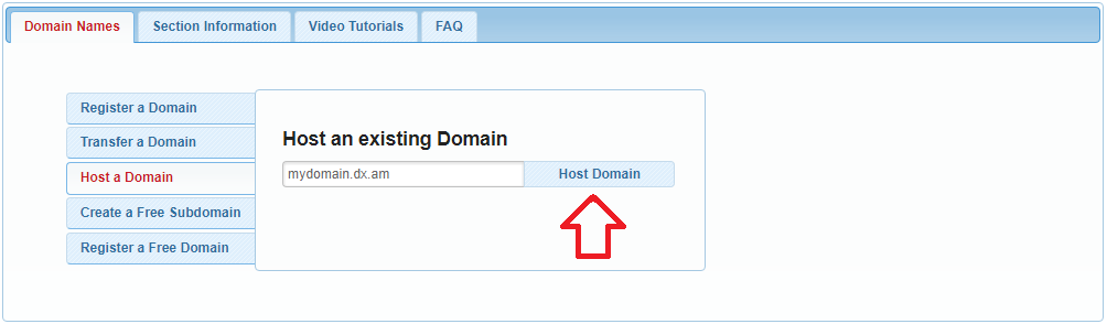 - Open the Host a Domain tab.